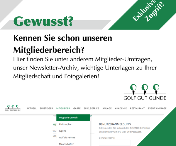Treffpunkt ist der Akademie-Bereich an der Golf-Arena (rechte Abschlaghütte beim großen Plakat) um 18:00 Uhr