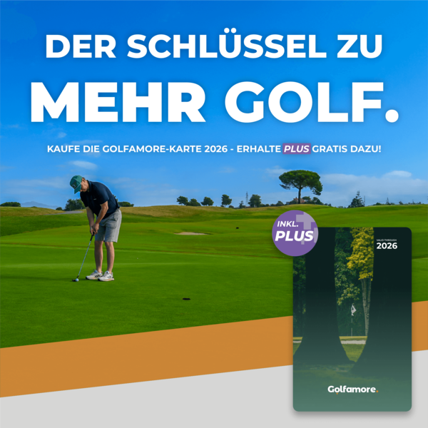Aktuell gibt es ein attraktives Angebot von Golfamore: Kaufe die Golfamore-Karte 2026 und erhalte PLUS gratis (Wert 20 €). Mit Golfamore PLUS kannst Du teilnehmende Golfamore-Plätze zu bestimmten PLUS-Zeiten erneut spielen und mehrfach zum halben Greenfee aufteen.