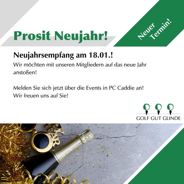 aufgrund der aktuellen Straßenverhältnisse müssen wir leider unseren Neujahrsempfang verschieben. Der neue Termin ist nun der 18. Januar 2026 um 15 Uhr im Restaurant des Golf Gut Glinde.