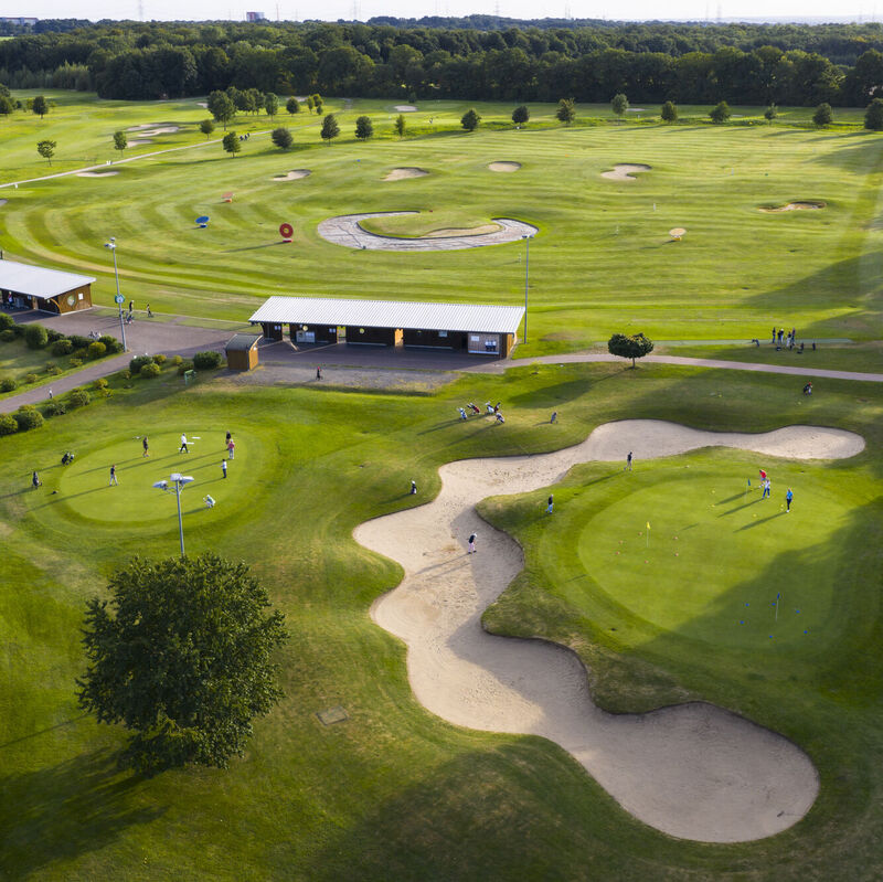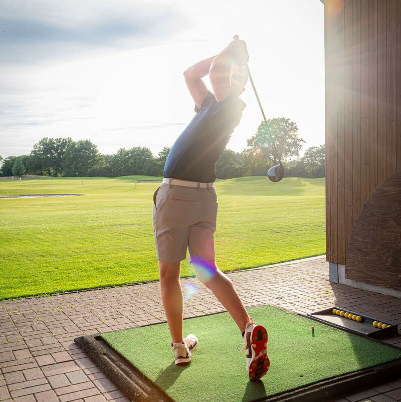 Du probierst Abschläge und einfache Übungen auf der Driving Range aus – ganz ohne Leistungsdruck.