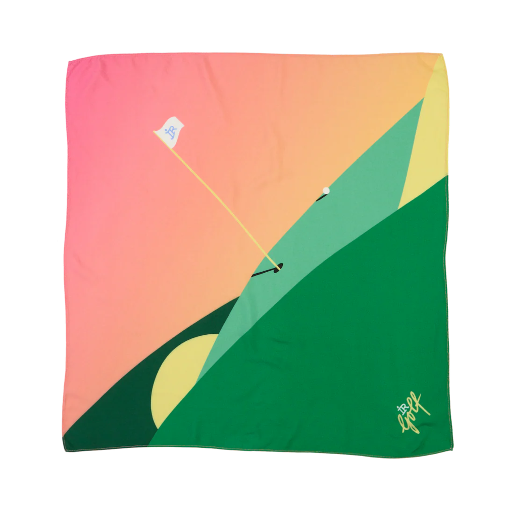 Das Funky-Fairway-Artwork bringt Sonnenuntergangs-Vibes in jeden grauen Tag und macht deinen Nacken warm, egal ob du auf Tee 1 stehst oder durch die Stadt läufst.